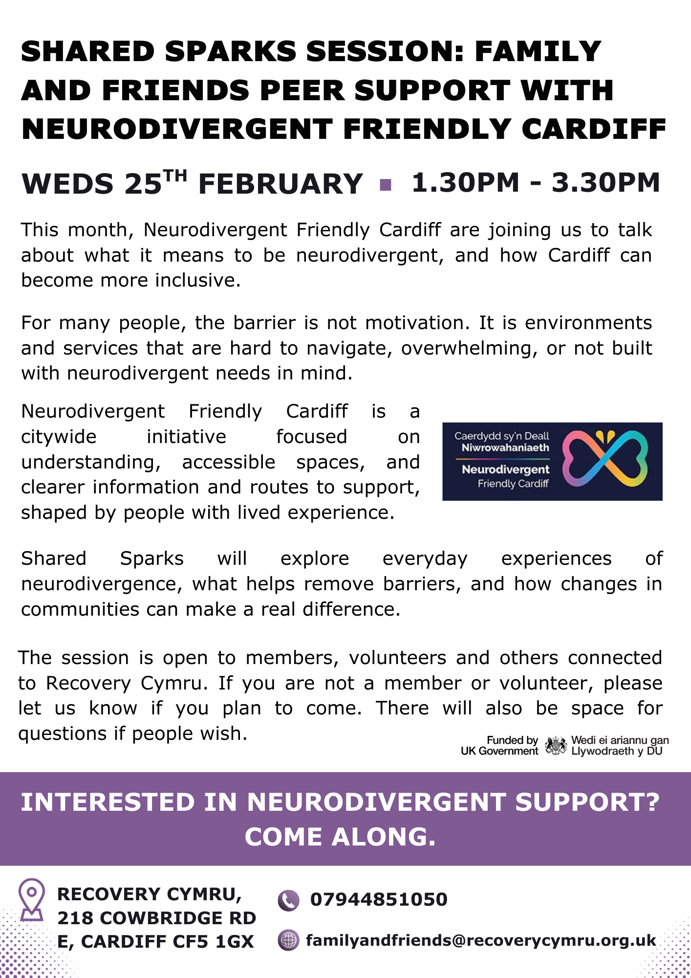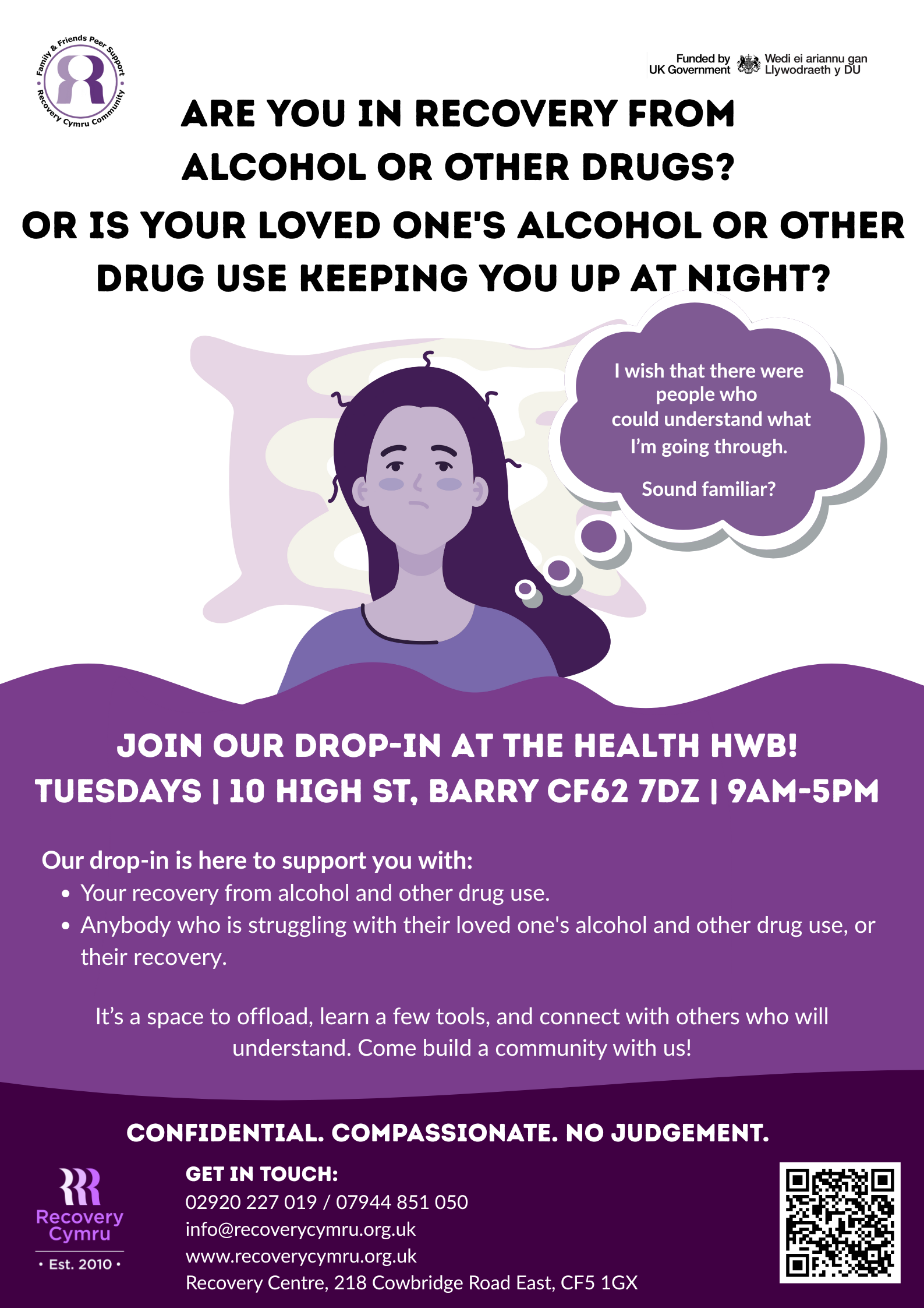 Location: Recovery Cymru, Cardiff Recovery Centre, Cowbridge Rd East, CF5 1GX
